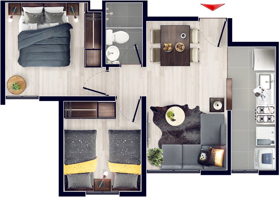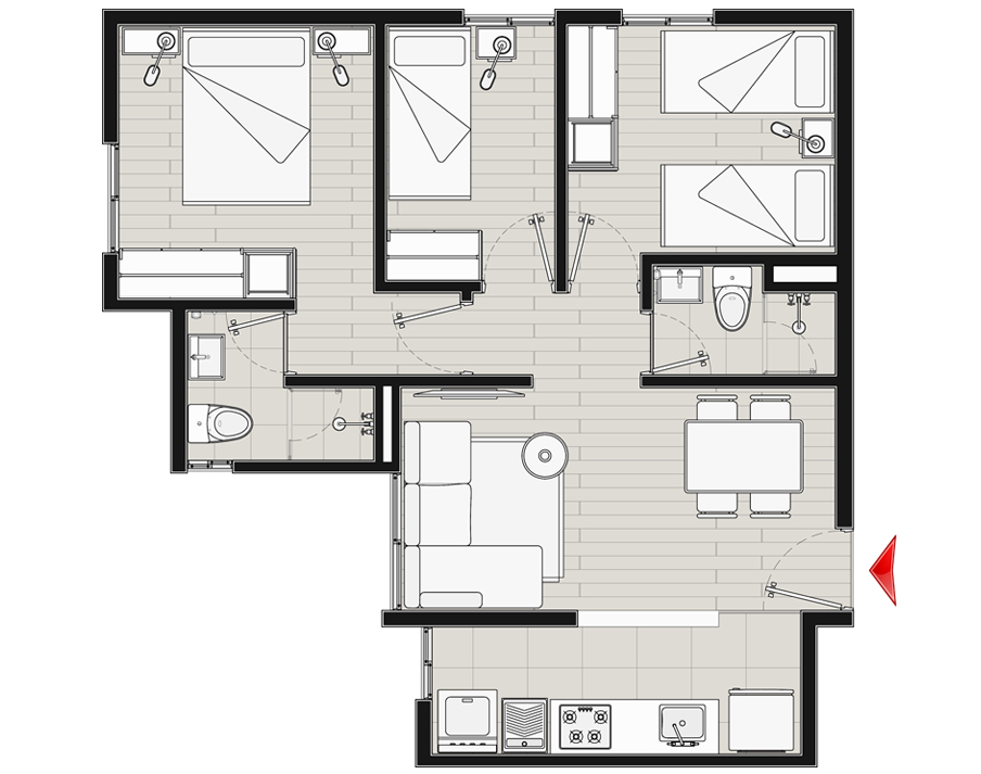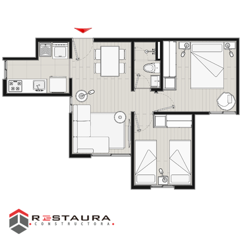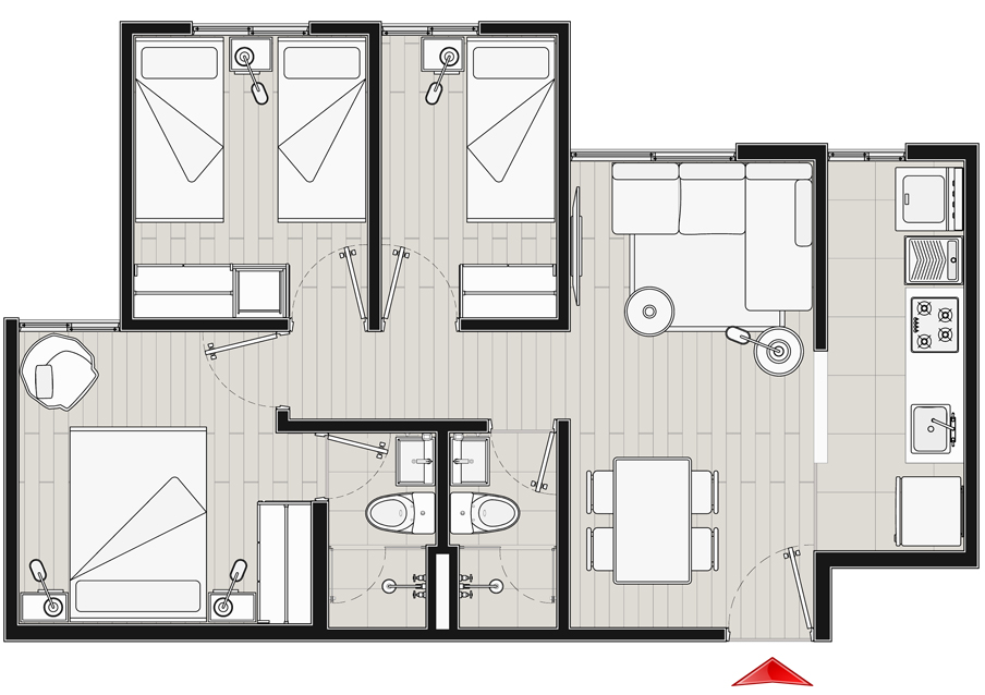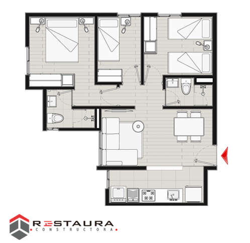 Balcón de 3,76 m2 y Terraza de 22,39m2